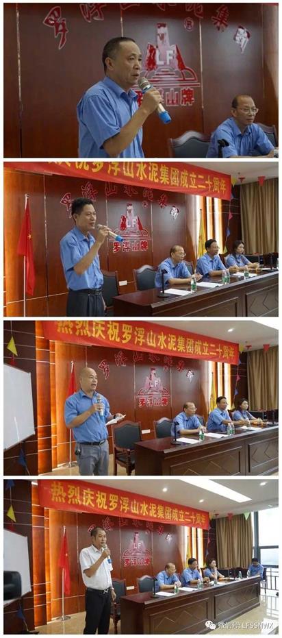 會(huì)議由行政副總裁李麗華主持,吳國(guó)強(qiáng)董事長(zhǎng)、謝偉松常務(wù)副總裁及集團(tuán)下屬水泥廠、混凝土攪拌站共7位總經(jīng)理作了二十周年致辭。