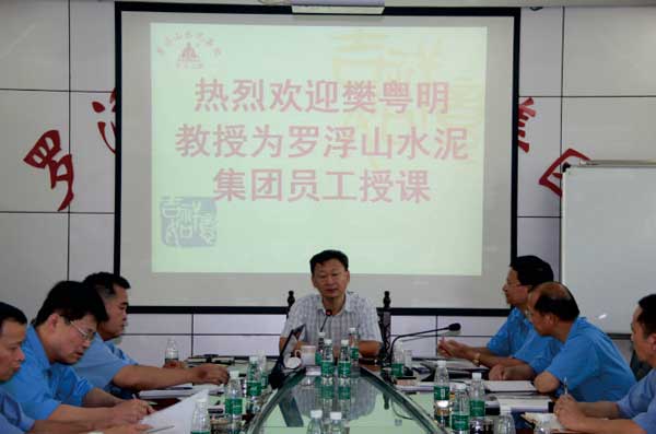 7月6日上午10:30 分, 在2013年上半年銷售工作總結(jié)會(huì)議結(jié)束后,羅浮山水泥集團(tuán)技術(shù)顧問華南理王大學(xué)樊粵明教授為參會(huì)人員講授水泥的使用性能。下午,樊教授與員王進(jìn)行積極的互動(dòng)交流,會(huì)議氣氛熱烈,員工紛紛表示通過樊教授的講座強(qiáng)化了業(yè)務(wù)知識(shí),并對(duì)公司的前景信心滿懷,在今后的工作中再接再勵(lì),共同攜手.為羅浮山水泥創(chuàng)造更高的輝煌而努力奮斗!